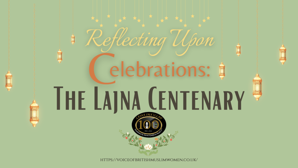 And it’s something I’ve been thinking about more as the Lajna Centenary is here and we as Ahmadi Muslim women are coming together to celebrate the completion of 100 years since the establishment of the Women’s Auxiliary Organisation. I think what I find amazing is that at the heart of all of this celebration is the consistent reminder that if there is anything to celebrate it is purely God’s compassion and blessings that He has bestowed upon us.