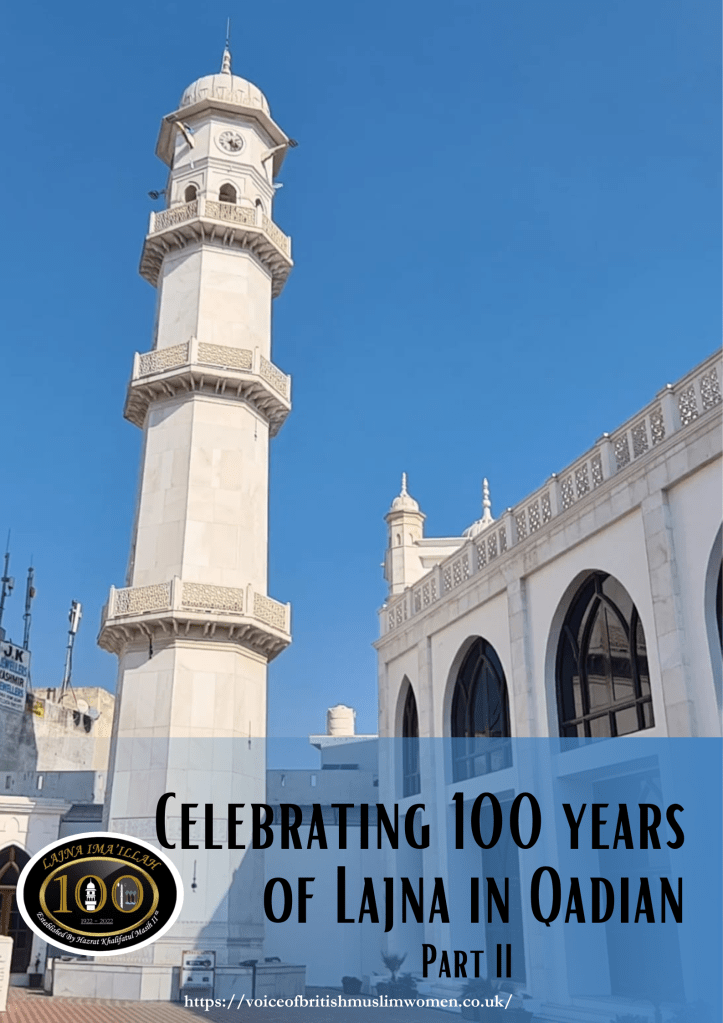 Journeying back to the humble roots of the organisation in Qadian and retracing the footsteps of the empowered and independent women who came before me, I am overwhelmed with gratitude and admiration for what it means to be a member of Lajna Ima’illah. I am humbled by the progress that has been made over the past century and inspired by the remarkable women that make up Lajna Ima’illah such as those Kashmiri aunties I met at Mubarak Mosque. My heart fills with joy to think of the ambition and goodness in the sweet Nasirat who will soon enter Lajna and the mark they will inshAllah make on the world. Above all, I thank God Almighty for the countless blessings He has bestowed upon us through Islam and Ahmadiyyat and Lajna Ima’illah.
